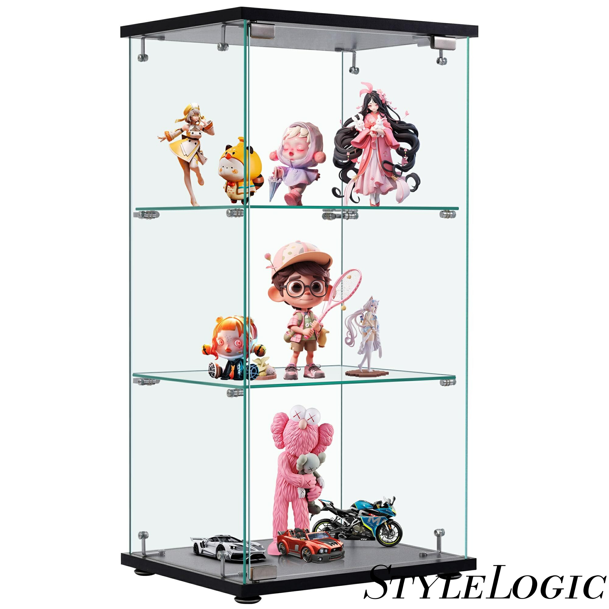 コレクションケース フィギュアケース 3段 幅42.5×奥行36.5×高さ86cm 全面ガラス ブラック 強化ガラス