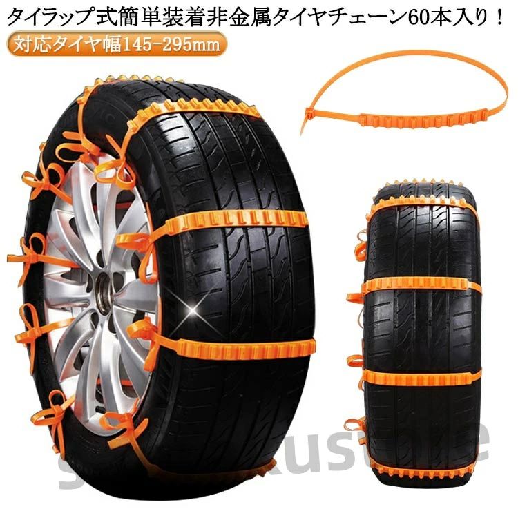 簡単装着 滑り止めチェーン 非金属 ジャッキアップ不要 60本入タイヤチェーン