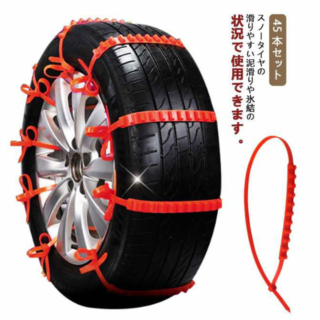 45本セット タイヤチェーン 非金属 簡単 スノーチェーン 雪チェーン ジャッキアップ不要 雪道 凍結 悪路対応 鋸歯形 事故防止 簡単装着 車用 ホイールチェーン 軽自動車用 SU 滑り止めチェーン