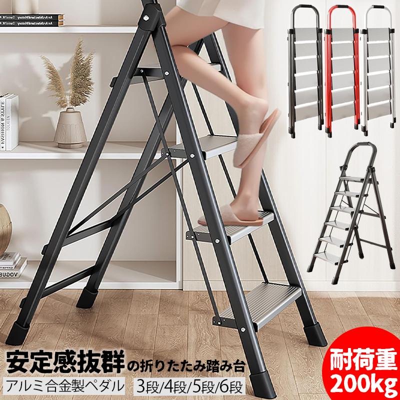 脚立 アルミ 踏み台 折り畳み 3段 4段 5段 6段 折りたたみ 梯子 持ち手付き 耐荷重200kg 軽量 持ち運び 室内 屋外 おしゃれ 滑り止め付き 多機能 洗車用 掃除 安全