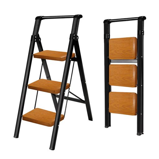 折りたたみ脚立ステップ台家庭用軽量高耐久滑り止めステップ省スペース収納コンパクト室内屋外兼用折りたたみ式踏み台ホワイト&木目