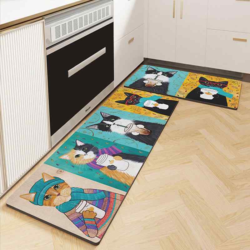 キッチンマット かわいい動物柄 高級感 滑り止め 吸水吸油性 汚れにくい お手入れ簡単 テックレザー 長方形 玄関マット 台所 アニマルデザイン フロアマット