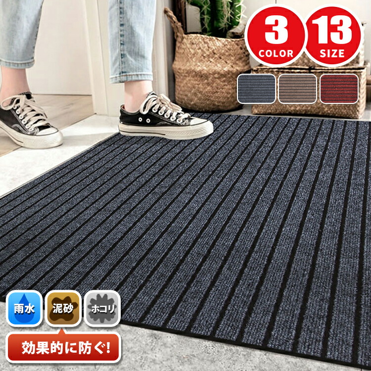 3カラー/13サイズ 玄関マット 50×80 60×90 80×100 長方形 エントランスマット 泥落とし 大判 ドアマット ゴムマット 足拭きマット キッチン 吸水 簡単掃除 滑り止め ホテル お店