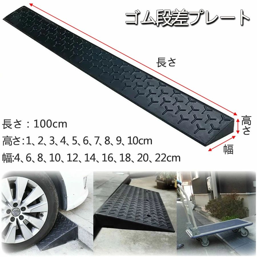 駐車場 段差プレート 3cm 4cm 5cm 6cm 7cm 8cm 9cm 10cm 15cm 18cm 20cm 段差用 プレート 室内 スロープ ゴム製 隙間 車いす 車椅子 自転車用、屋外 車