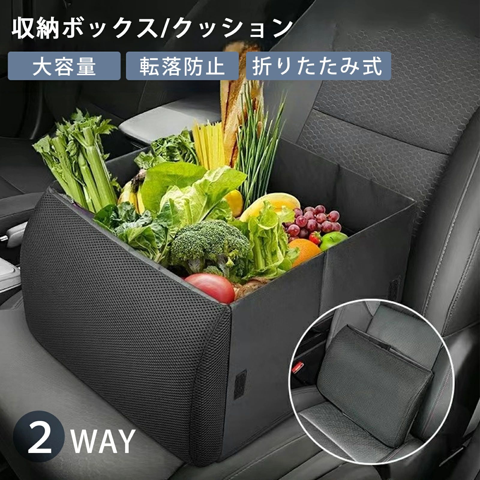 腰クッション 2WAY式 折りたたみ 収納ボックス 助手席 荷物置き 落下防止 背もたれ 車用 クッション 後部座席 車内収納 カー用品 ブラック ブラウン 便利グッズ