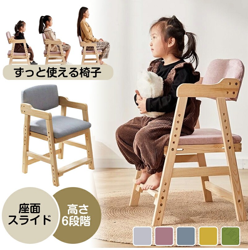 子供の成長に合わせて使える木製ハイチェア 食事や学習に最適で安全な設計のキッズチェアです