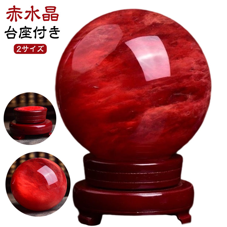 赤水晶 パワーストーン 水晶玉 風水 縁起物 水晶ボール レッドクリスタルボール 置物 インテリア 水晶オブジェ 自宅・オフィス用 デスク装飾 贈り物 書斎飾り 誕生日プレゼント
