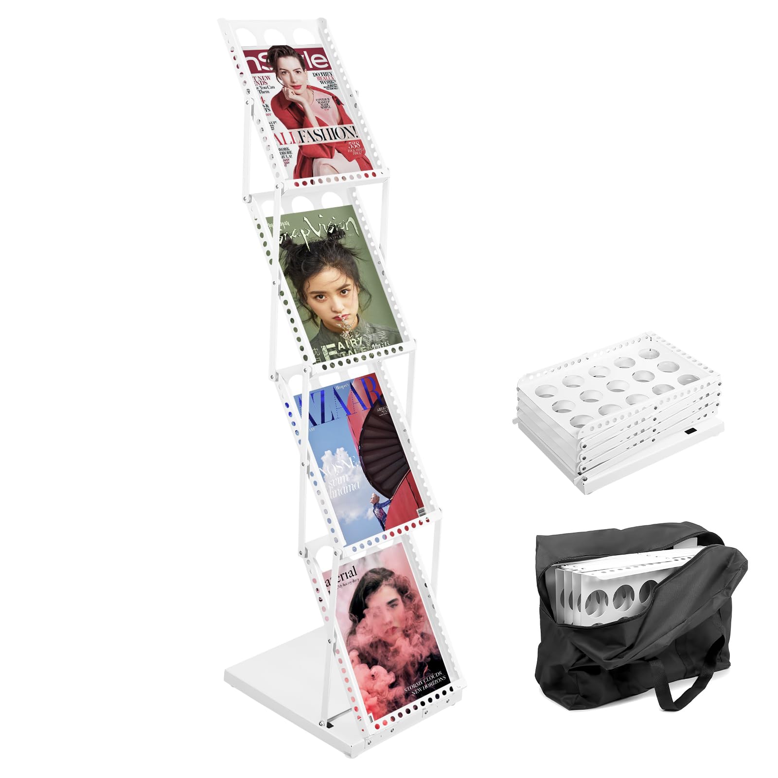 カタログスタンド 折りたたみ式 4段 片面 マガジンラック 4サイズに対応して マガジンスタンド スチール製 収納袋付き 展示会
