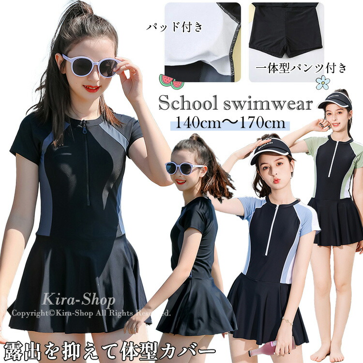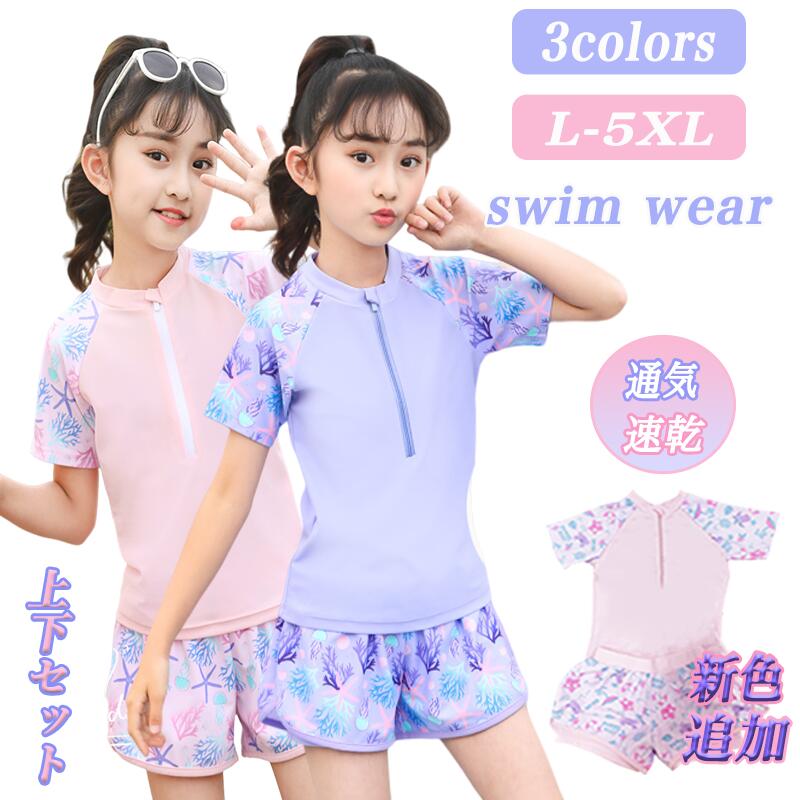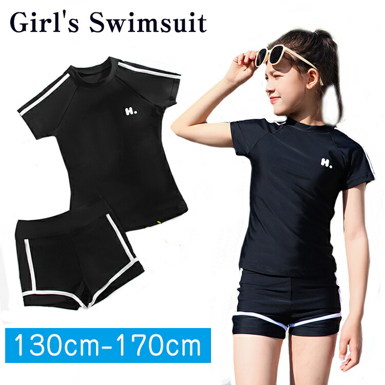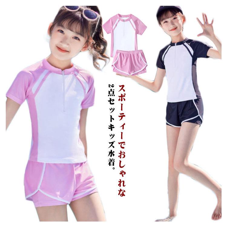 子供 ジュニア 水着 女の子 高校生 150 160 170 小学生 中学生 スクール水着 セパレート キッズ 女児 ショートパンツ ラッシュガード ス 半袖
