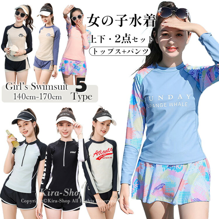 女の子 水着 ジュニア スクール水着 長袖 セパレート 2点セット 体型カバー レディース トップス スカート ショートパンツ キッズ パッド付 日焼け対策 スポーティー ガールズ 子ど 紫外線対策