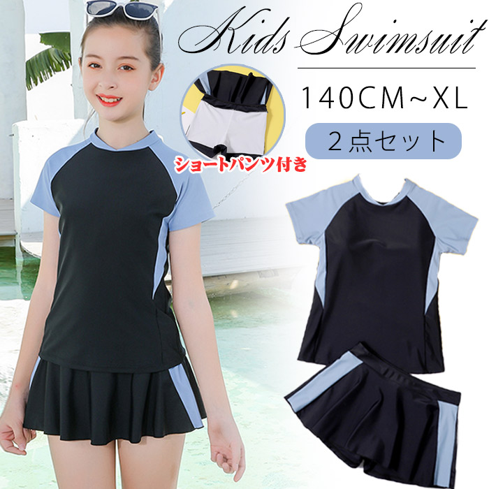 送料無料 子供服 ガールズ トップス ショーツ 2点セット キッズ服 女の子 スイミング プール 子供 キッズ水着 みずぎ 大人 子ども 小学生スクール水着 おしゃれ 海水浴水遊びみずぎ