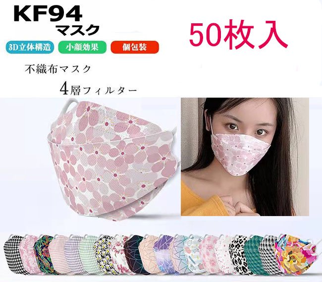 KF94マスク 不織布マスク 個包装 立体マスク KF94 韓国マスク デザイン カラーマスク 小顔効果 使い捨てマスク ウイルス N95 同等 花粉 花柄 4層フィルター構造 口紅 ほこり