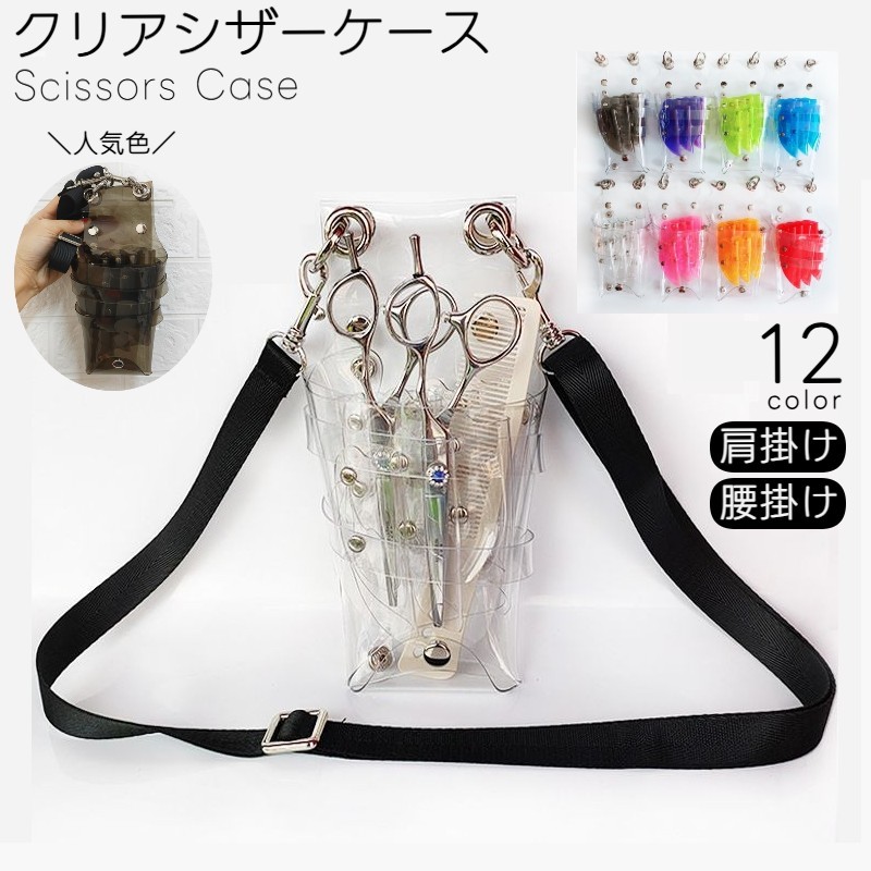 シザーケース シザーバッグ ベルト付 クリア 透明 大容量 多機能 軽量 ハサミ 7丁挿し 肩掛け 腰掛け 2way 美容師 トリマー 理容師 花屋 持ち運び レディース 男性 女性 男女兼用 メンズ