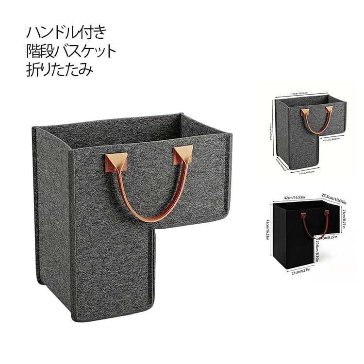 ハンドル付き 階段バスケット 階段 収納ボックス フェルト生地 小物入れ 階段フェルトバスケット 折りたたみ 衣類オーガナイザー 家庭用オーガナイザー 大容量 多機能 折り 収納ケース