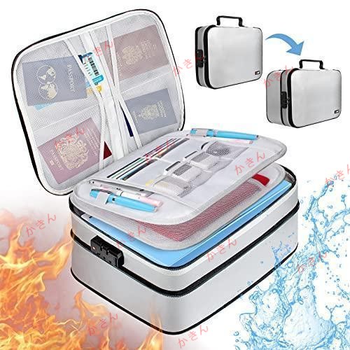 耐火バッグ 耐火ケース 耐火金庫 書類ケース 集金袋 手提げ金庫 貴重品入れ 大容量 10CM高さ調節可能 鍵付き 耐火 収納ボックス 3層式 金庫