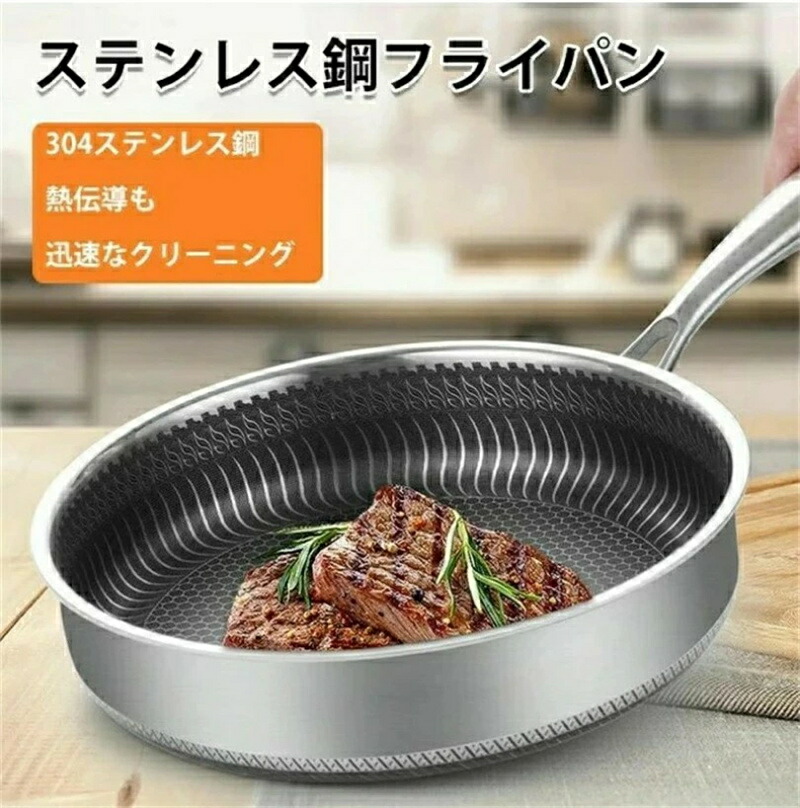 !★人気商品★【2026新登場】焦げ付き防止304ステンレス鋼フライパン/両面ハニカムステーキポ焦げ付き防止304ステンレス鋼フライパン