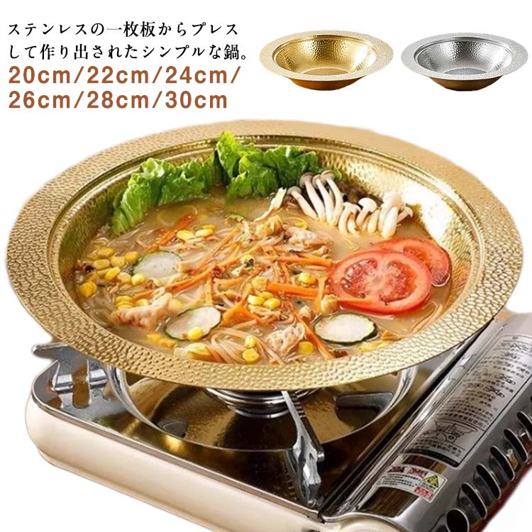 20/22/24/26/28/30 寄せ鍋 しゃぶ鍋 槌目仕上げ ステンレス製 対応 しゃぶしゃぶ鍋