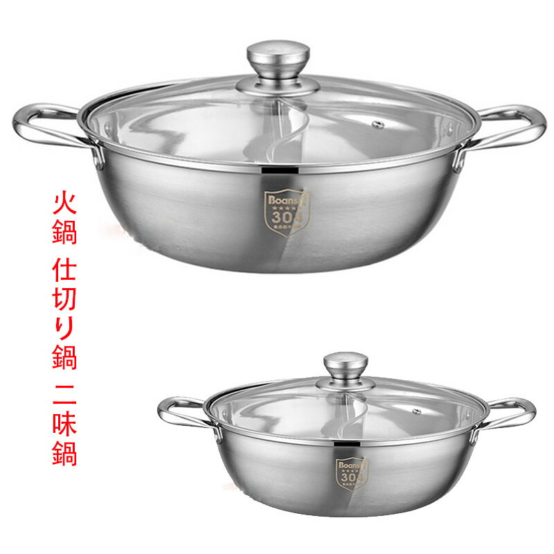 ステンレス 火鍋 仕切り鍋 34cm 30cm 仕切り付き 鍋 キッチン用品 付き 直径28cm 36cm 二味鍋 両手 IH対応