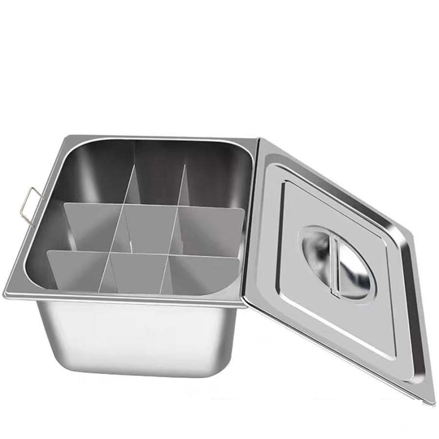 おでん鍋 IH対応 角 仕切り鍋 業務用 家庭用 両手鍋 ステンレス鋼 中華火鍋 卓上鍋 直火対応 蓋 関東煮 しゃぶしゃぶ鍋 (おでん鍋ハンドル付き+蓋+仕切 仕切り付