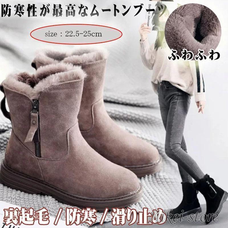 ファー シューズ レディース あったかい ショートブーツ ムートンブーツ 美脚 履きやすい 暖かい 冬 厚底 防寒 撥水 スノーブーツ 靴ローヒール 防滑 裏起毛
