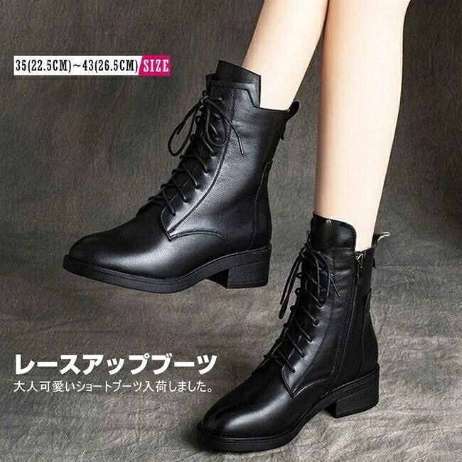 ショートブーツ 裏ボア 暖かい レースアップブーツ サイドファスナー 袴用ブーツ ラウンドトゥ ローヒール 編み上げ ショート 歩きやすい 黒 卒業式に最適で快適なデザインの人気防寒ブーツ 履きやすい