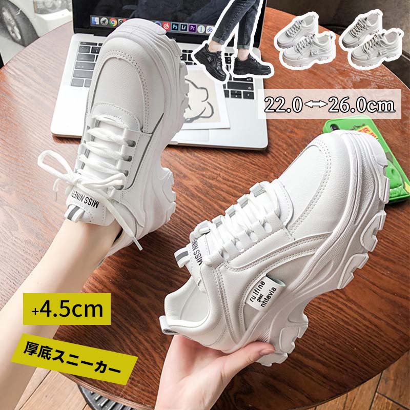 レディース 軽量 靴 厚底スニーカー おしゃれ スニーカー ダッドスニーカー きれいめ インヒー 白 歩きやすい 4.5センチ 黒 細身