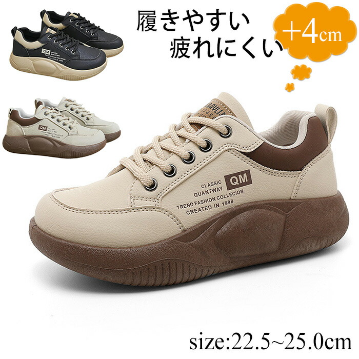 歩きやすい厚底スニーカー 足長&美脚効果 22.0-26.0