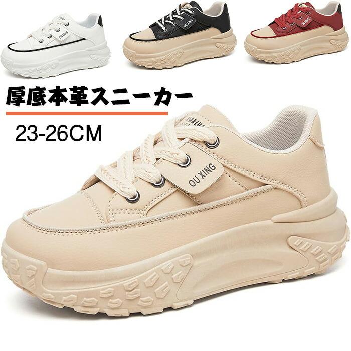 厚底本革スニーカー レディース 美脚 身長アップ ダッドスニーカー 軽量 お洒落 可愛い