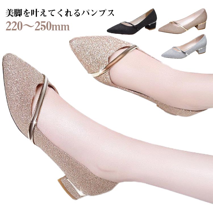内寸220~250 キラキラパンプス ローヒール 歩きやすい 結婚式 きれいめ