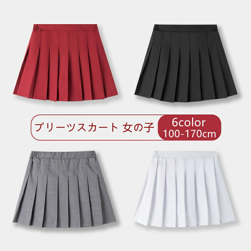 スクール プリーツスカート キッズ ガールズ レディース 制服 スカート ミニ丈スカート 110-170cm 6色 黒 白 無地 Aライン 可愛い プリーツ カジュアル コスプ ウエストゴム