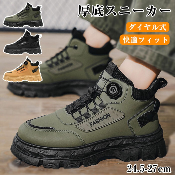 ダイヤル式 厚底スニーカー メンズ タクティカルブーツ 作業靴 おしゃれ 耐滑 防寒 衝撃吸収 通気 耐摩耗 簡単脱着 日常/通勤/アウトドアスポーツ適切な