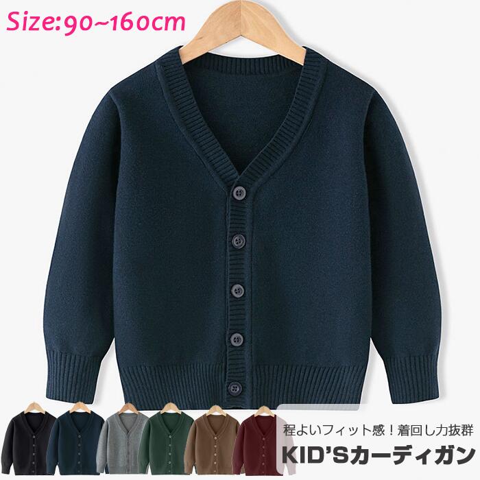 トップス スクール カーディガン Vネック セーター 中厚 キッズ 子供 選べる6色着回し力抜群 ジュニア ベ 男女兼用キッズ服カーディガンキッズ男の子女の子綿91%洗える毛玉にならないこども服