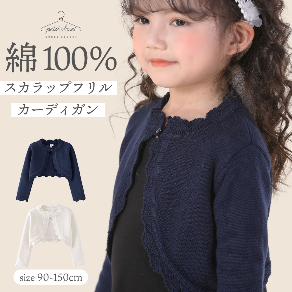 カーディガン 女の子 キッズ 子供 子供服 結婚式 入園 入学 卒園 卒業 ピアノの発表会 コットン ボレロ 春 夏 秋 フォーマル ネイビー 紺 ホワイト 白 100cm 110cm 12 90cm