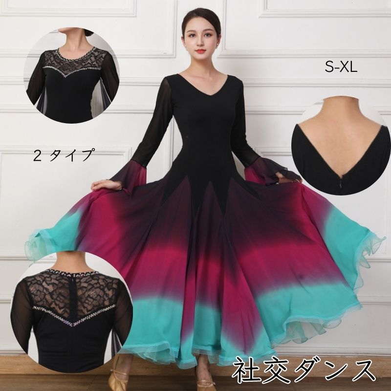 社交ダンス レディース ダンスドレス 衣装 ワルツ ワンピース イベント 大きい裾 モダン ドレス 社交ダンス衣装 広がる裾 スタンダード レッスン着 演出用 高級感 踊りドレス 大人気