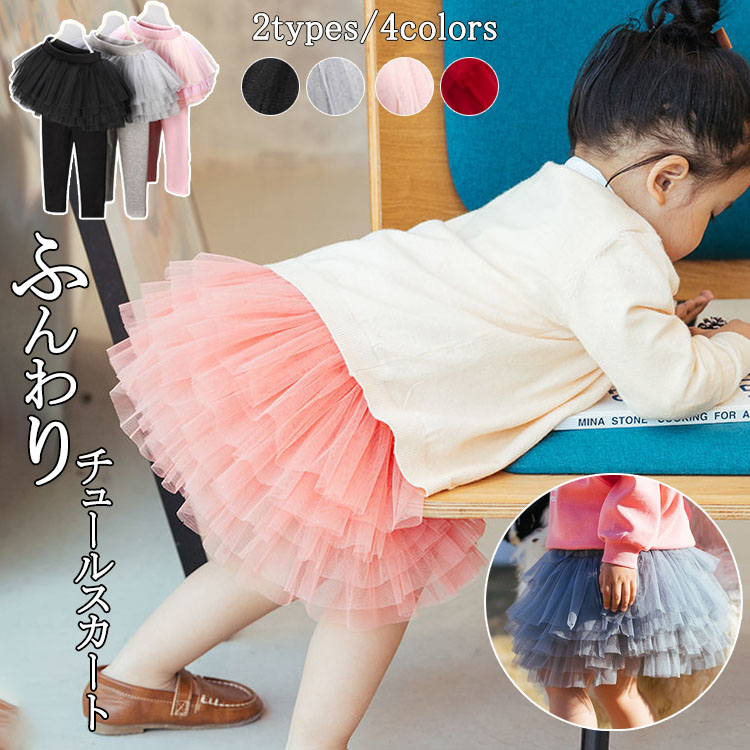 レギンスパンツ チュールスカート 10分丈 スカート サカッツ 女の子 パニエ チュチュ ベビー ジュニア おしゃれ 子供服 こども ボトムス 秋冬 80 90 100 110 120 130