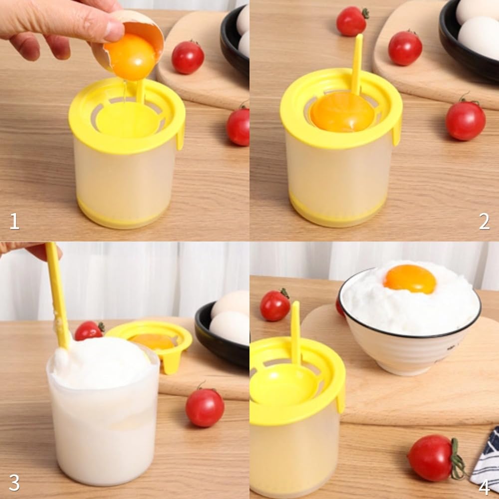 【ユーザーフレンドリーなデザイン】卵黄の分離が非常に簡単で混乱を引き起こさない設計になっています。卵白は下部の容器に集まり、黄身は上部の中央に留まる、直観的な操作が可能です。