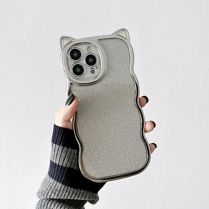 アイフォン iPhone 17 16 15 14 13 12 11 pro max スマートフォン スマホ 携帯 ケース カバー 猫耳 シルバー おしゃれ 可愛い 波 クリア