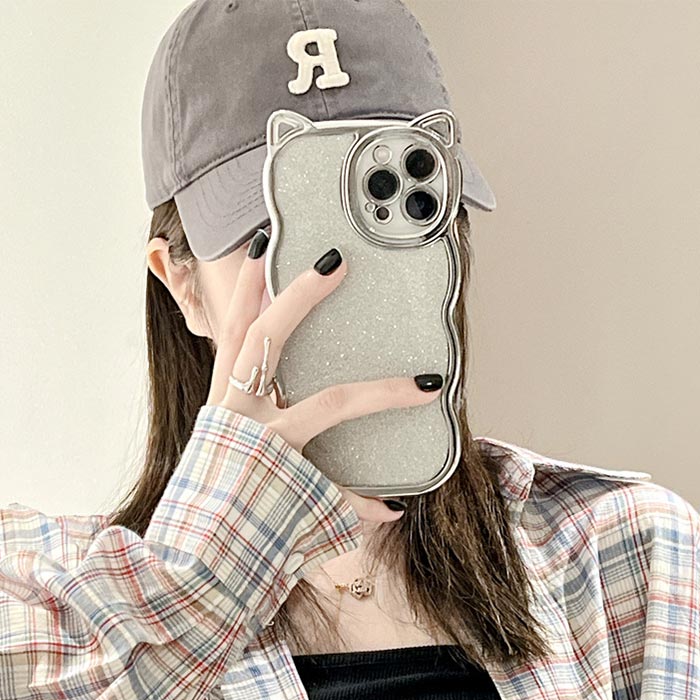 iPhone17ケース ラメシール付き 猫耳 可愛い 推し 人気 iPhone16ケース クリア 透明 波型 iPhone15ケース iPhoneケース スマホケース おしゃれ キラキラ アイフォンケース iPhone14ケース iPhone13ケース シルバー 柔らかい 軽量