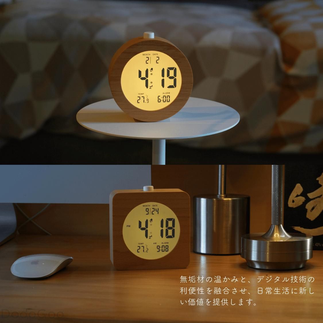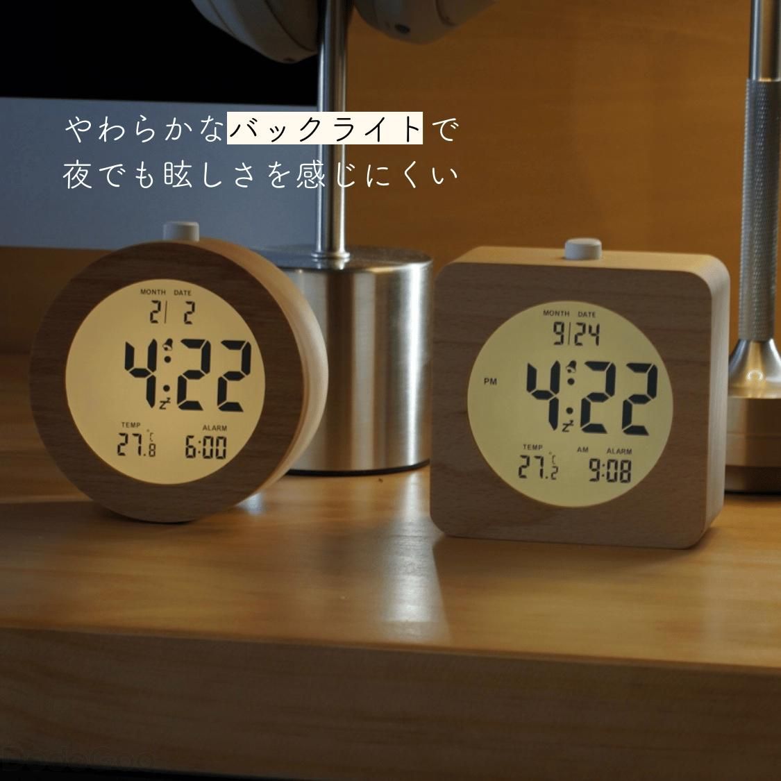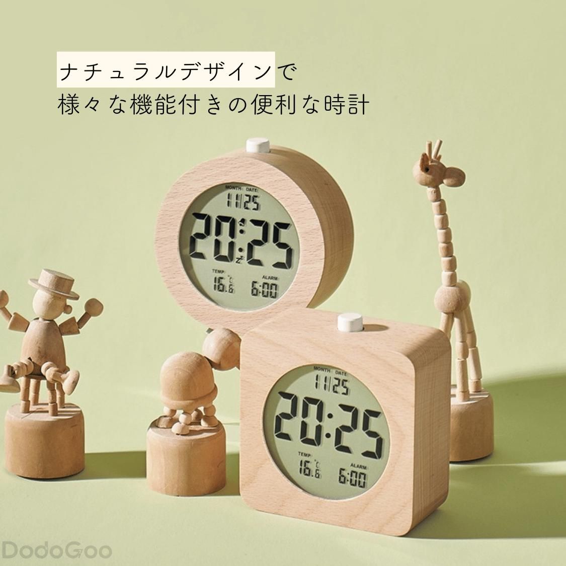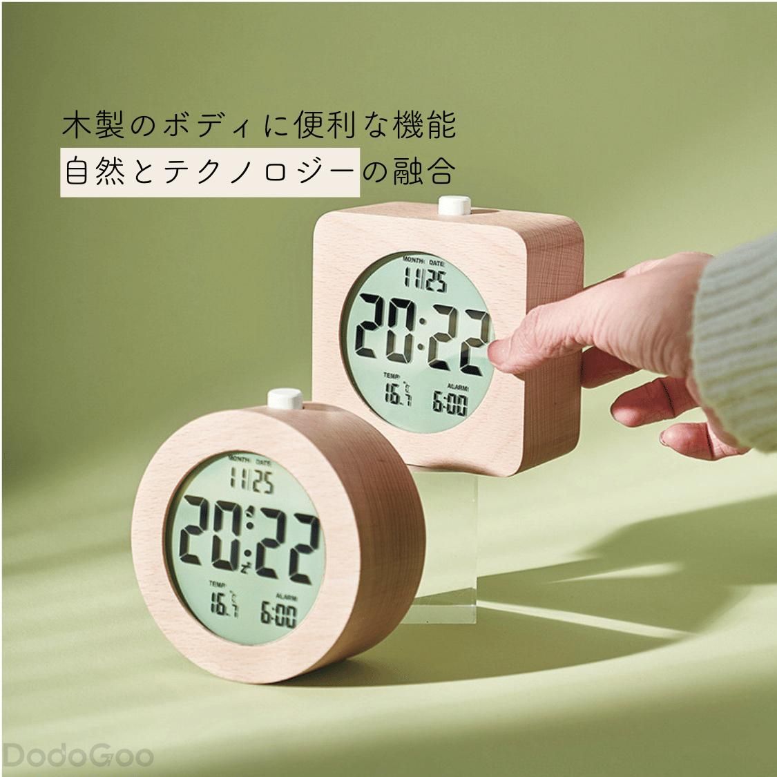 木製 デジタル時計 かわいい 北欧 小 スクエア ラウンド