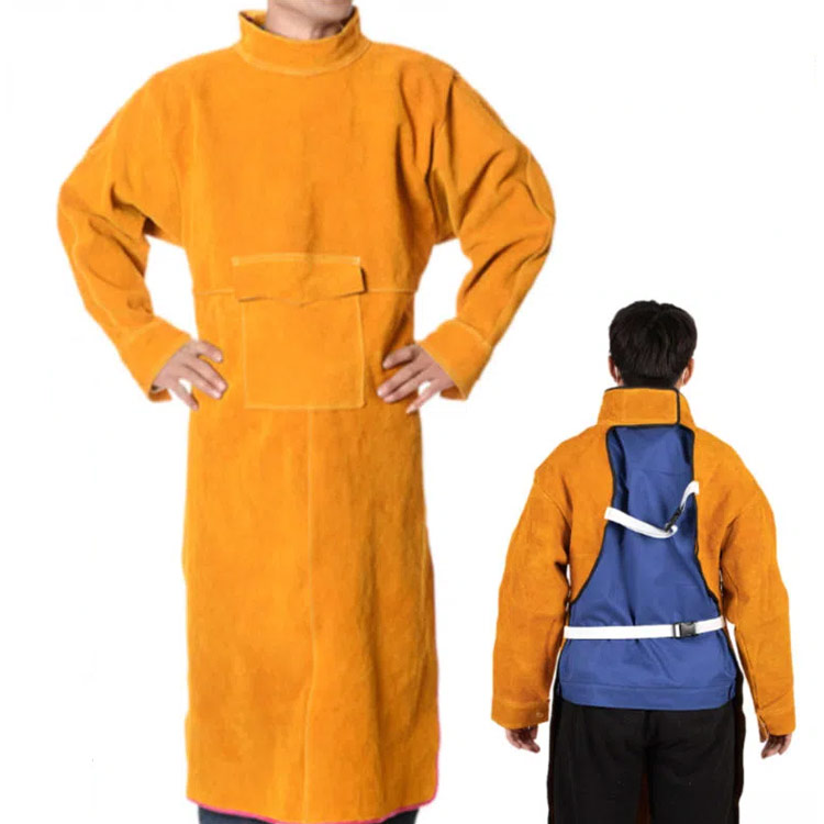 溶接エプロン 作業 革 レザー 溶接用 作業服 エプロン 豊富 膝丈(105CM)-ハイカラー ふくらはぎ丈(120CM)-ハイカラー 膝丈(105CM)-ローカラー ふくらはぎ丈(120CM)-ローカラー S L