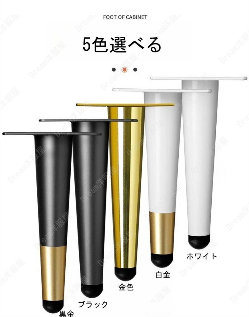 4本セット ソファ 脚 家具脚 金属製 白金 黒金 ホワイト ブラック 金色 まっすぐ 斜め