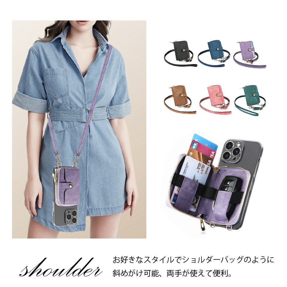 iPhone 16E ケース+カードポケット+ショルダー セット スマホ背面収納ケース TPU クリアケース スタンド機能 多機種対応 カバー iPhone16Eカバ カード収納