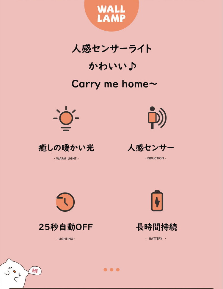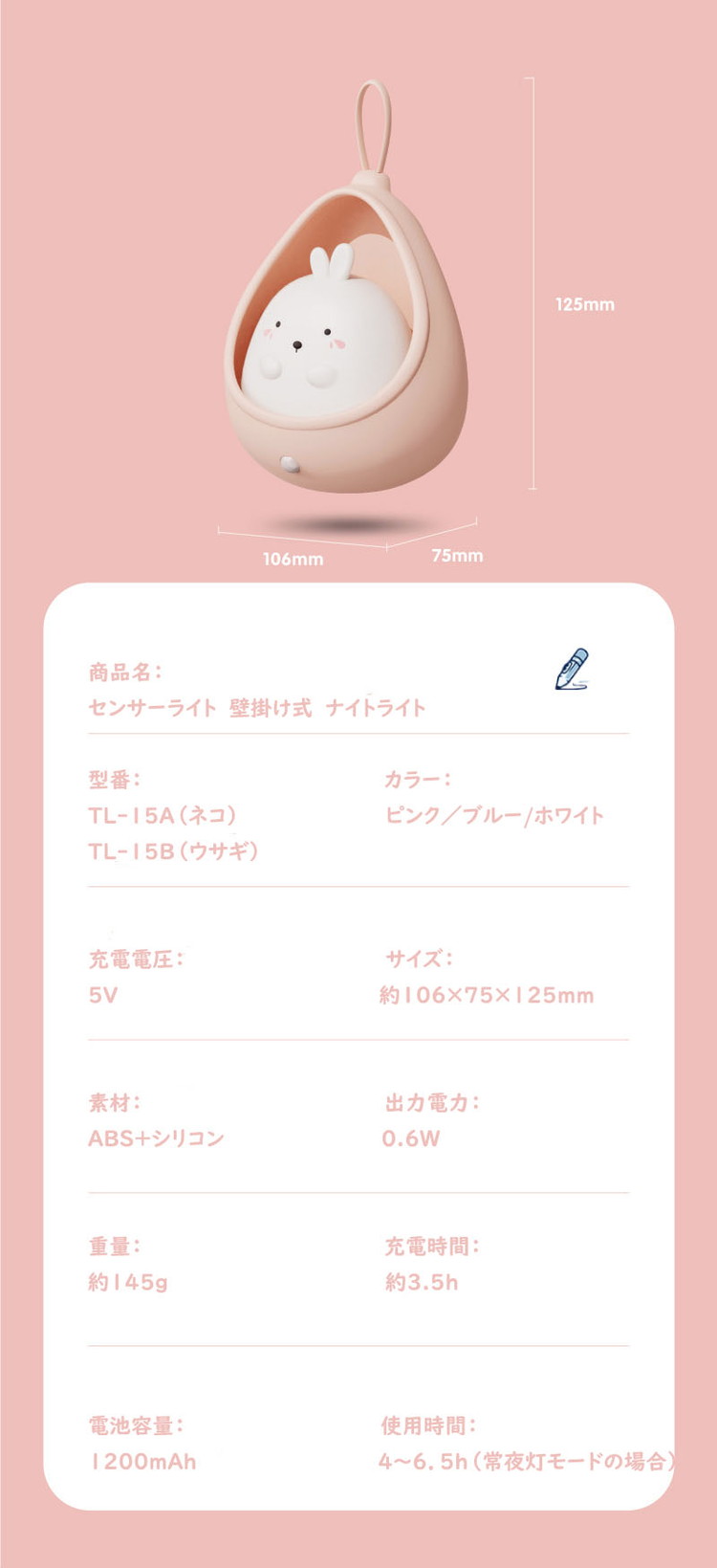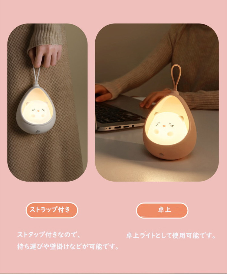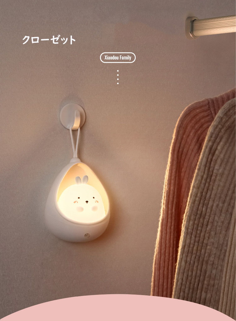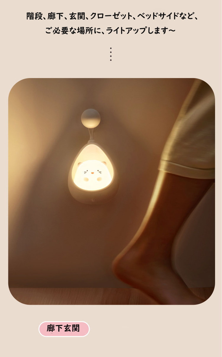 ネコ センサーライト led 充電式 ピンク ブルー ホワイト ネコ ウサギ