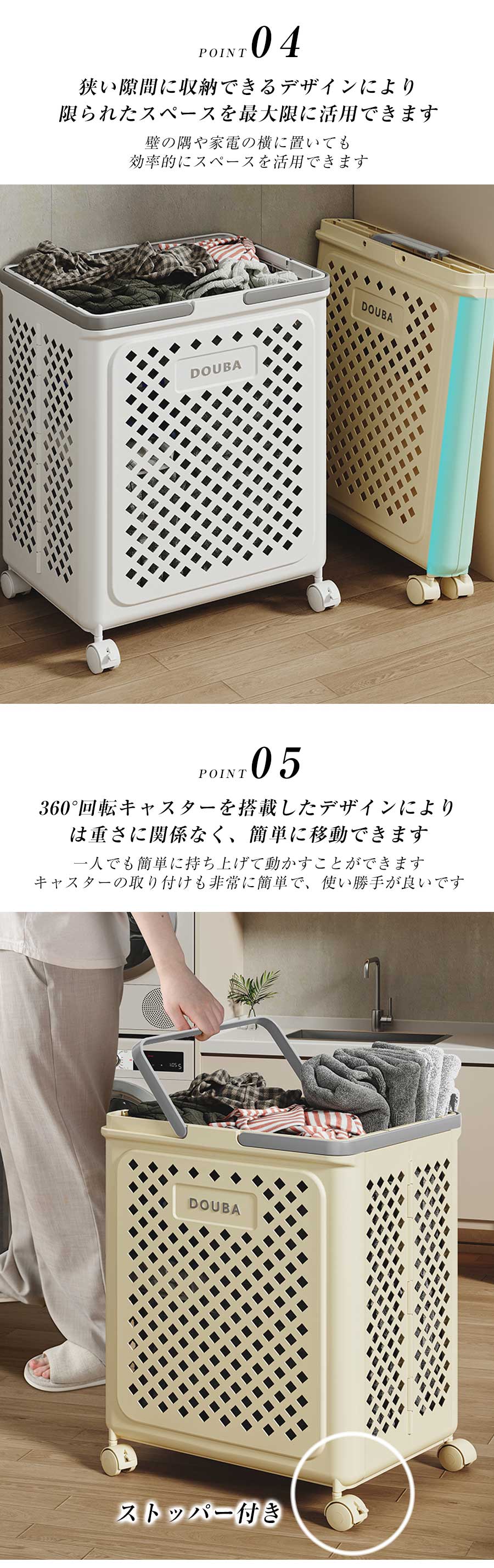 ランドリーバスケット 折りたたみ キャ ホワイト ミルクホワイト S L