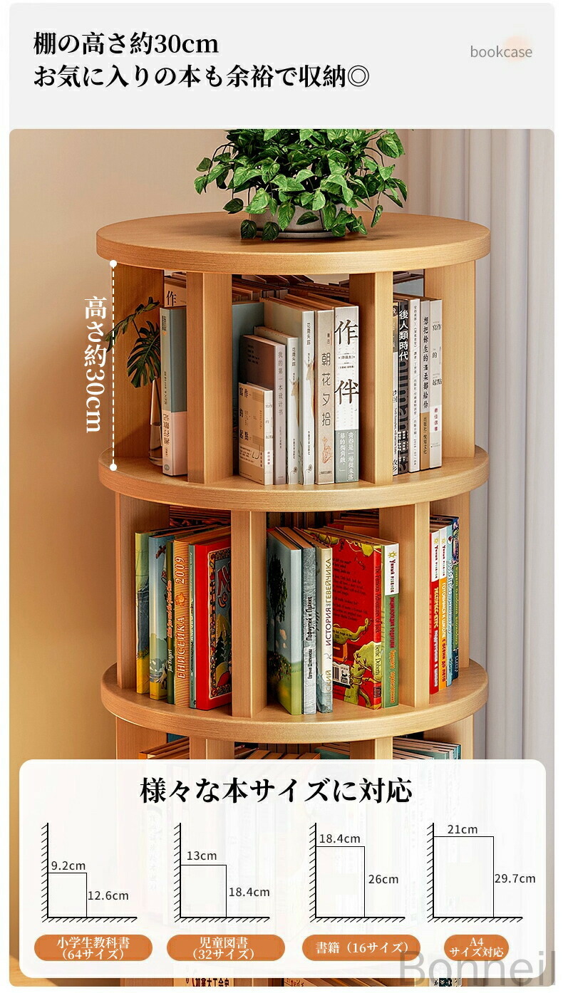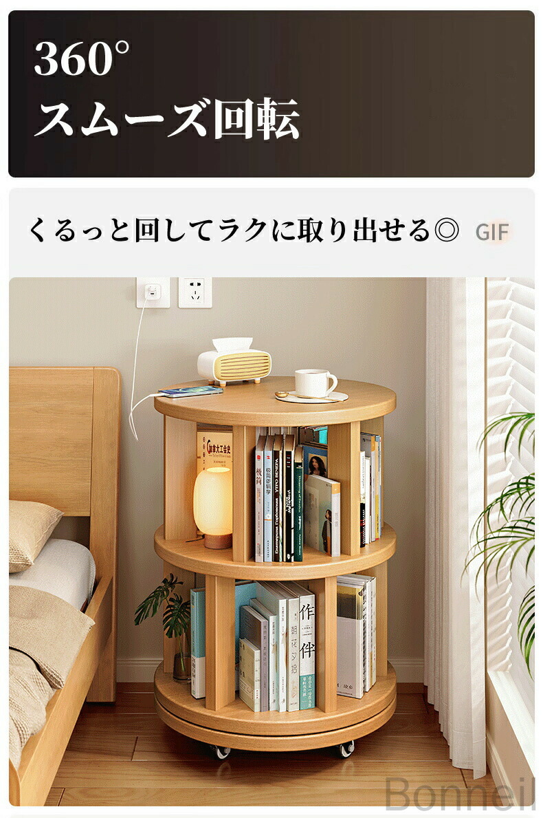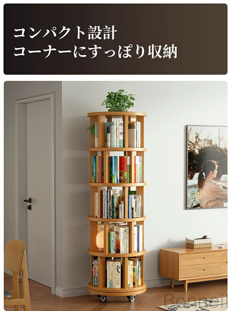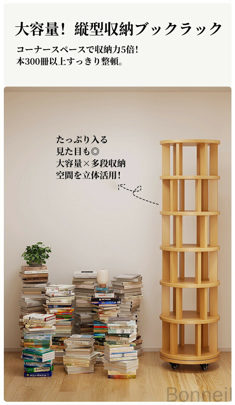 360°回転式本棚 回転ラック キャス 丸型 角型 1段 2段 3段 4段 5段 6段