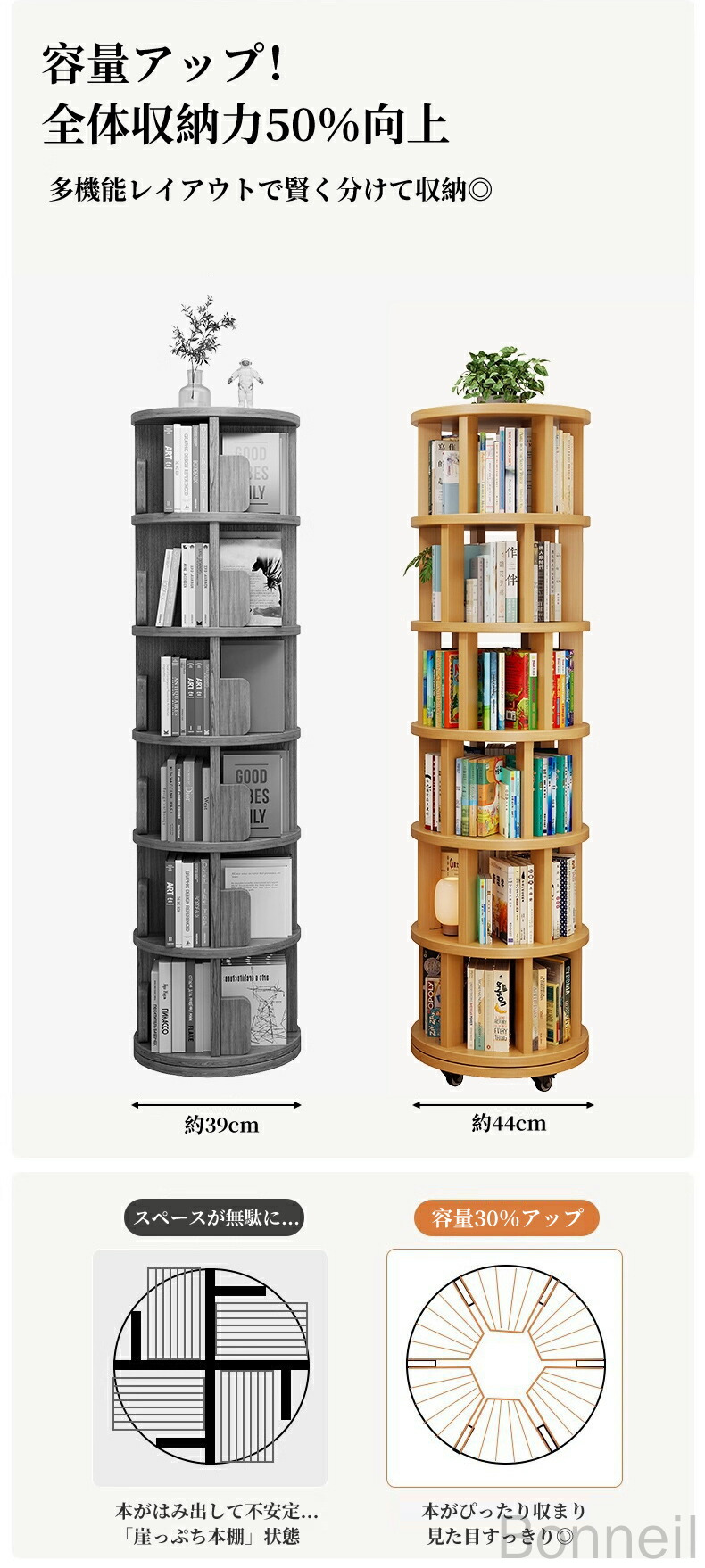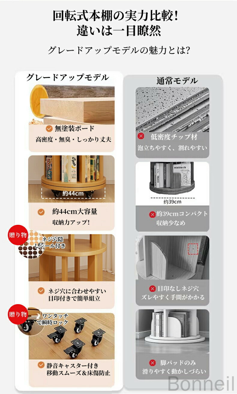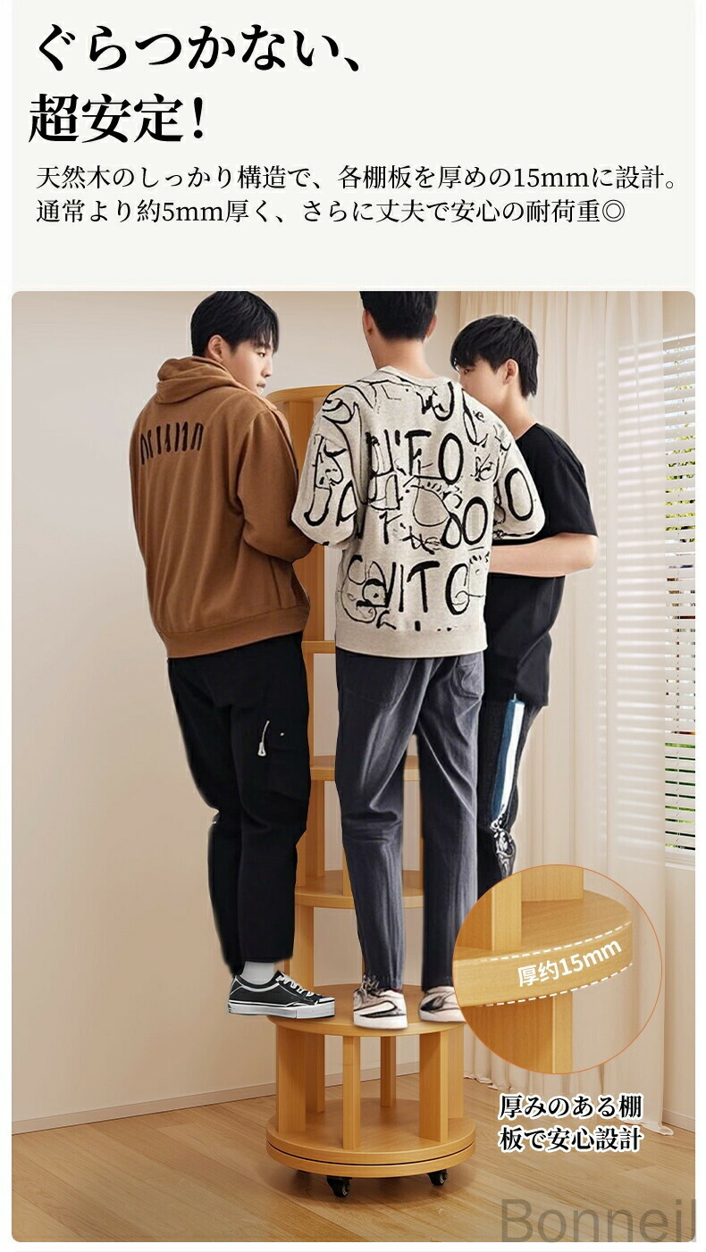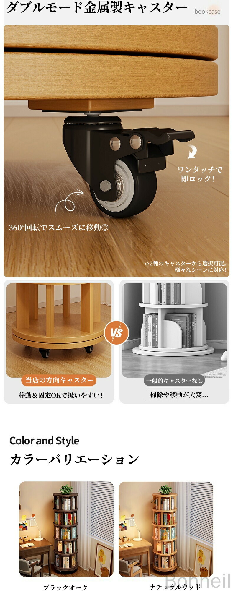 360°回転式本棚 回転ラック キャス 丸型 角型 1段 2段 3段 4段 5段 6段