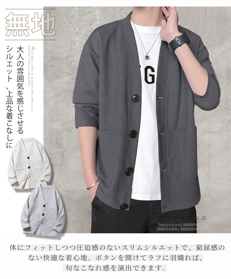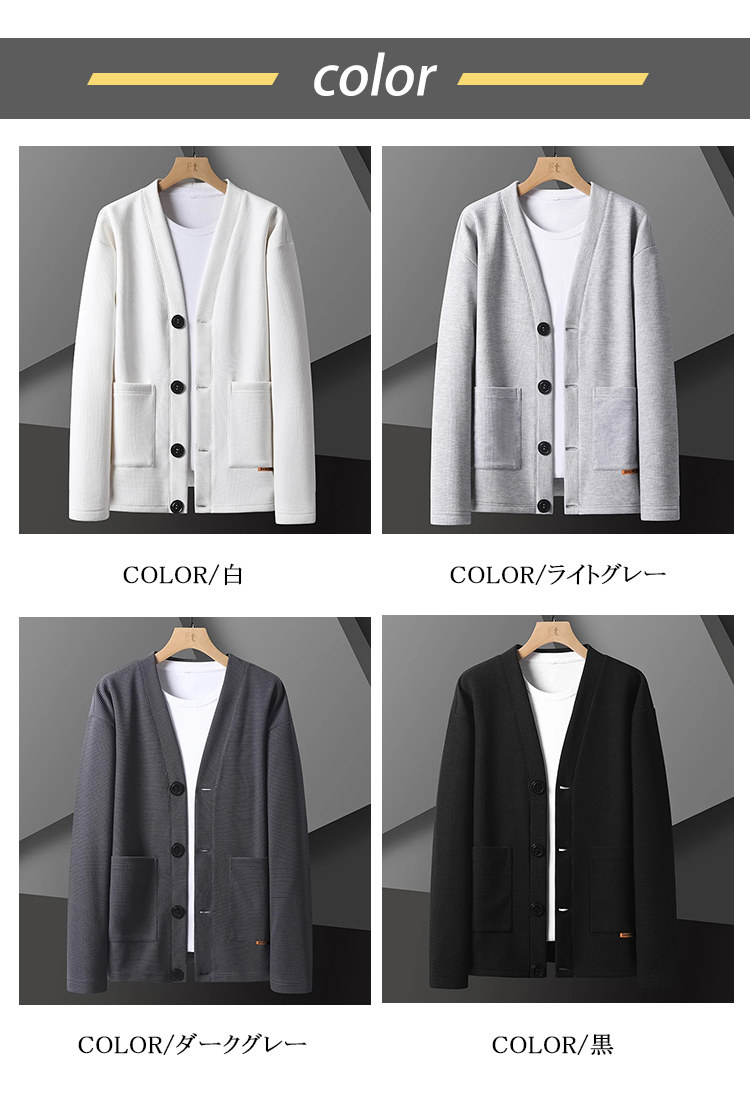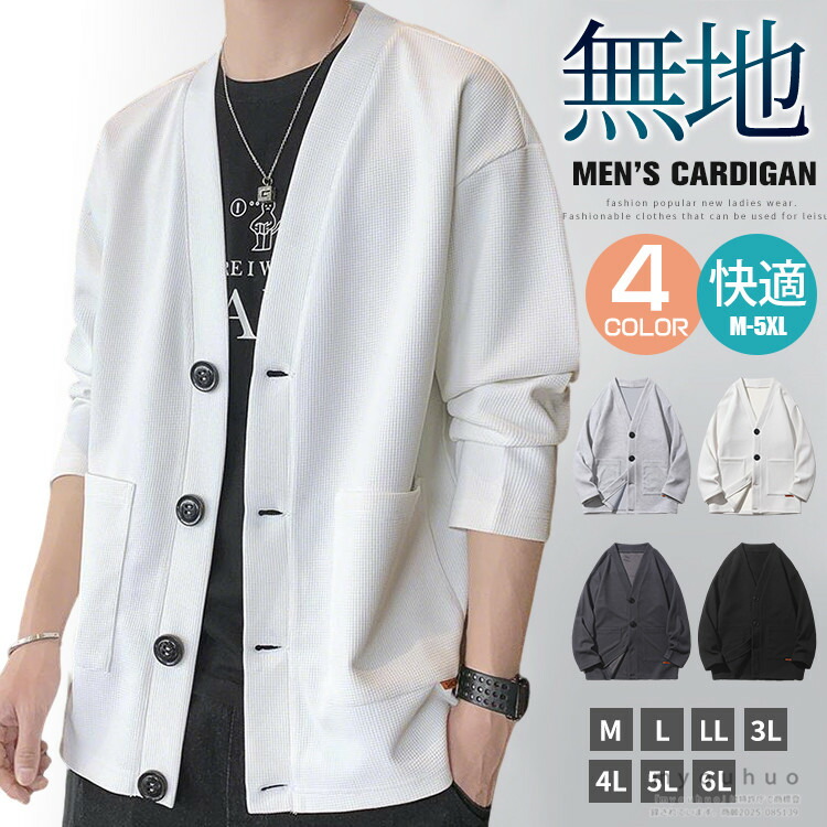 カーディガン メンズ 前開き ライトア トップス カーディガン 続々入荷中 M L XL 2XL 3XL 4XL 5XL 白 ライトグレー ダークグレー 黒