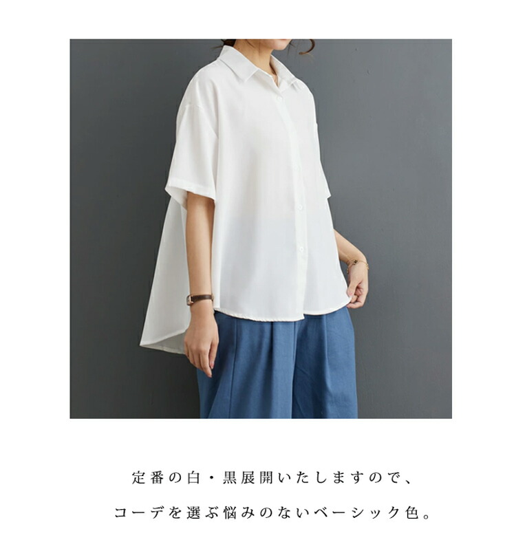 半袖シャツ レディース 襟付き ブラウ チュニック 早い者勝ち 折り襟 バンドカラー ホワイト ブラック ネイビー カーキグリーン グレーブルー 水玉(ネイビー) 水玉(ベージュ) 水玉(ブラック)