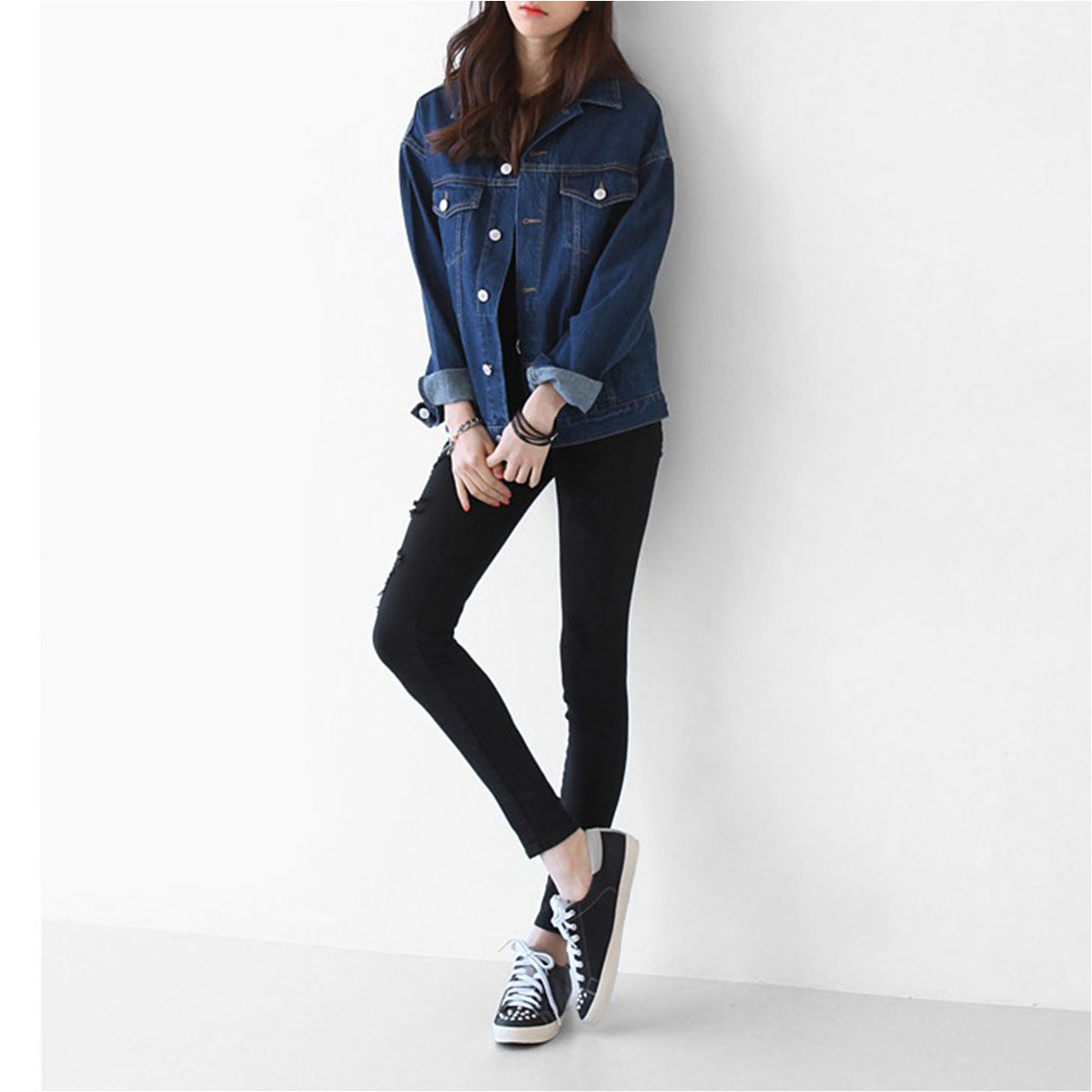 デニムパンツ ビジュー付き