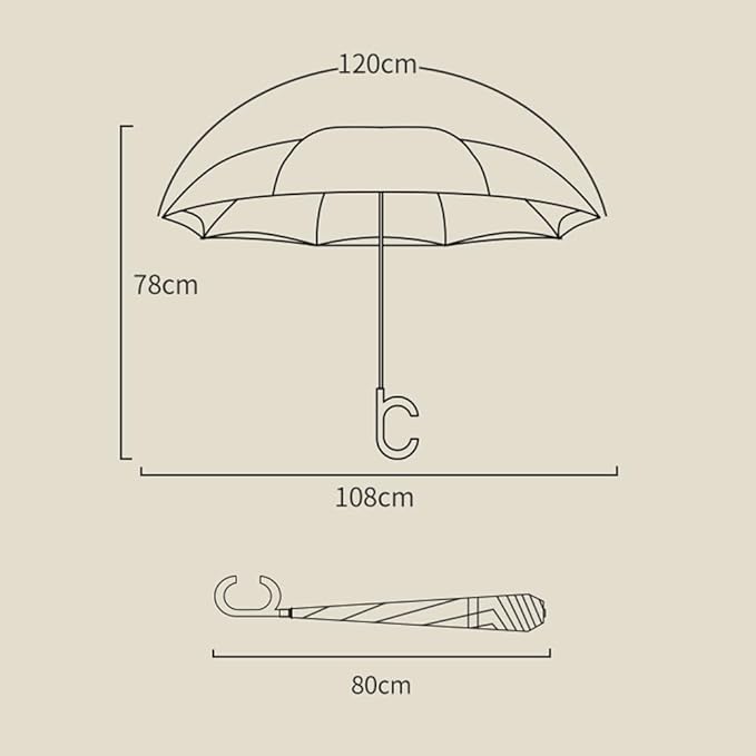 高いUVカット、遮光、遮熱効果があり、日傘としても使える。親骨が傘布の間に隠れているため、見た目がスッキリ。髪の毛も挟まらない!